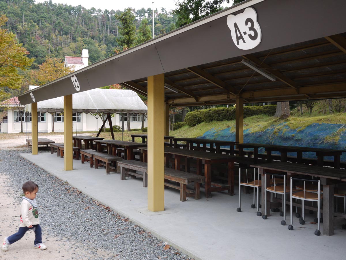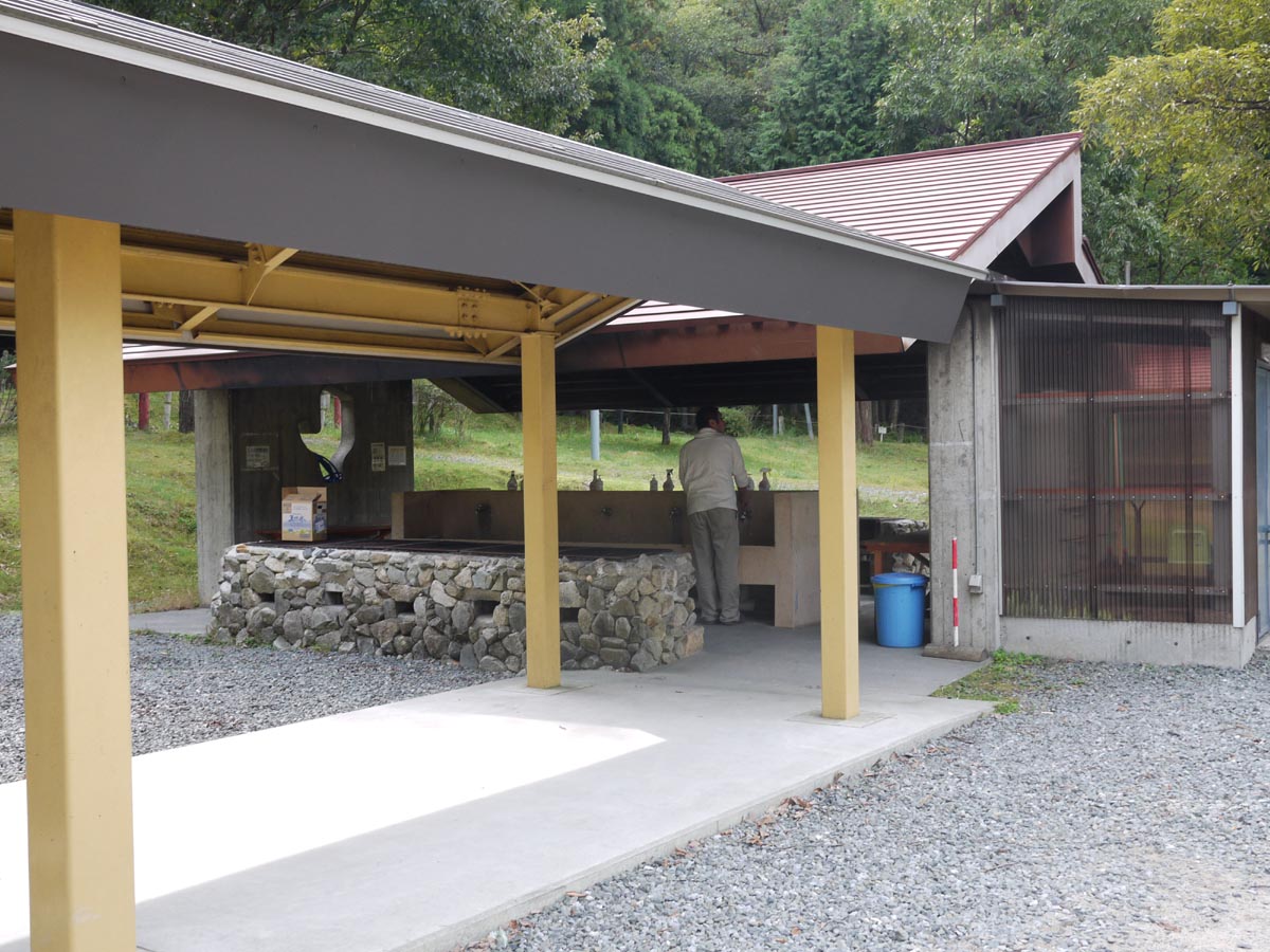 今回のわたしたちの食事は、初日昼、夜、二日目昼の計3回、屋外にある屋根つき、テーブルつき、椅子つきの炊事棟で食事を摂ります。