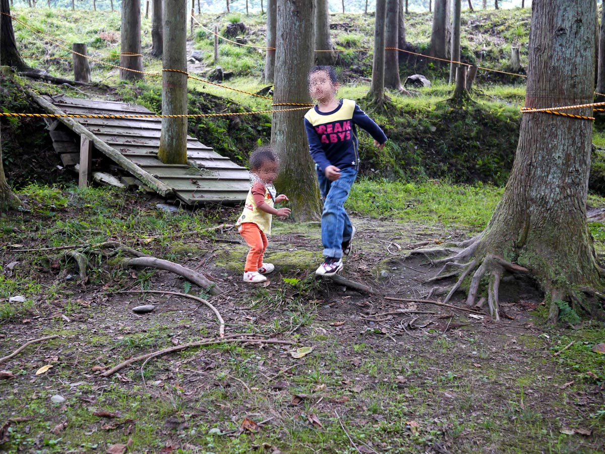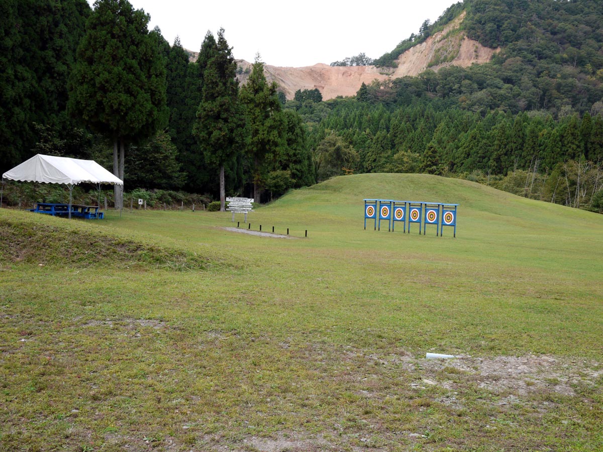 食後に施設を見回ったのですが、もくもくの里は結構施設が充実しており、屋外は、カヌー遊びができる池(遊び程度ですが)、グランドゴルフ、アーチェリー、ボール類、フライングディスク、竹馬(久しぶりに乗りました…)、自転車??などがあります。
