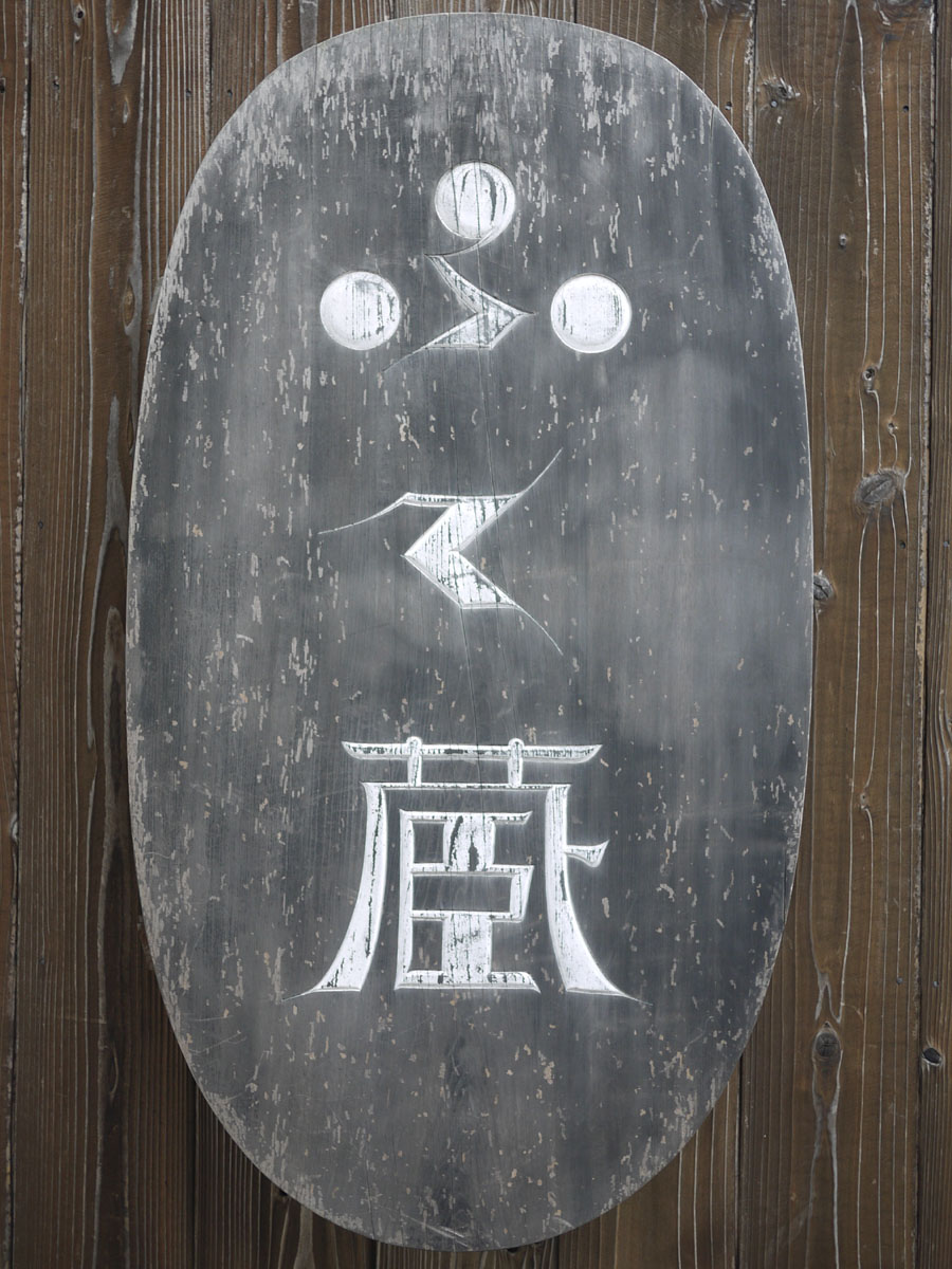 さて、駐車場からその橋を渡って、酒蔵の間を進んでいくと、左手に酒蔵を改築した、目的の「ふく蔵」が見えてきます。