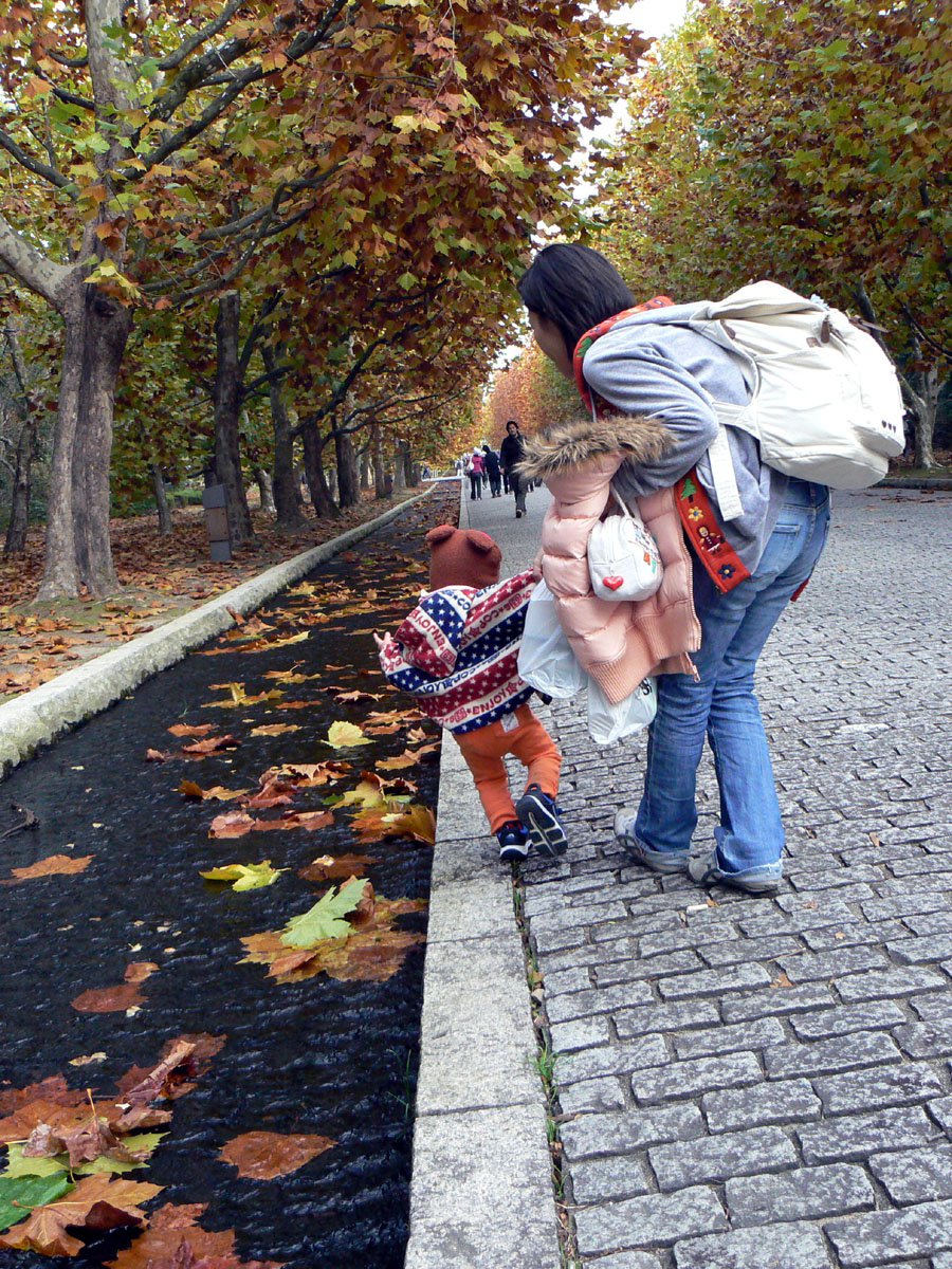 こどもたちは両手に持ちきれないほどの葉っぱを抱えて、それでもまだ落ち葉狩りをしています。